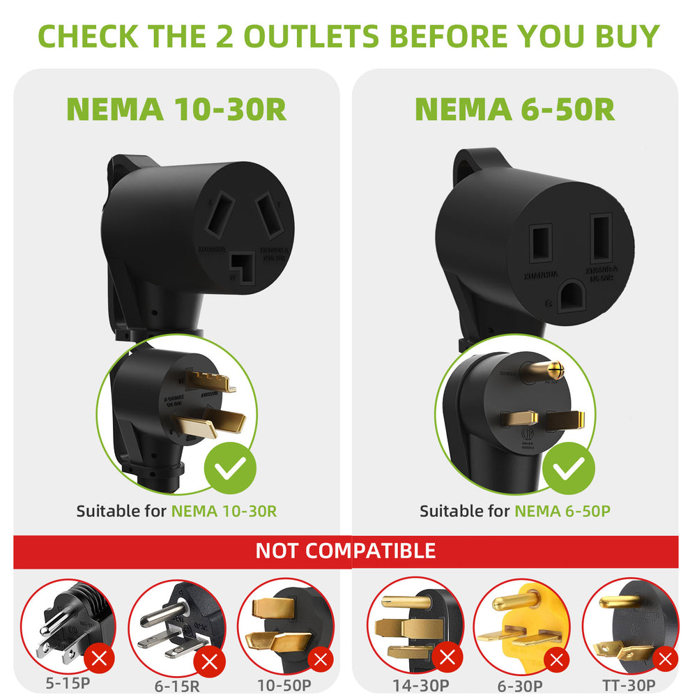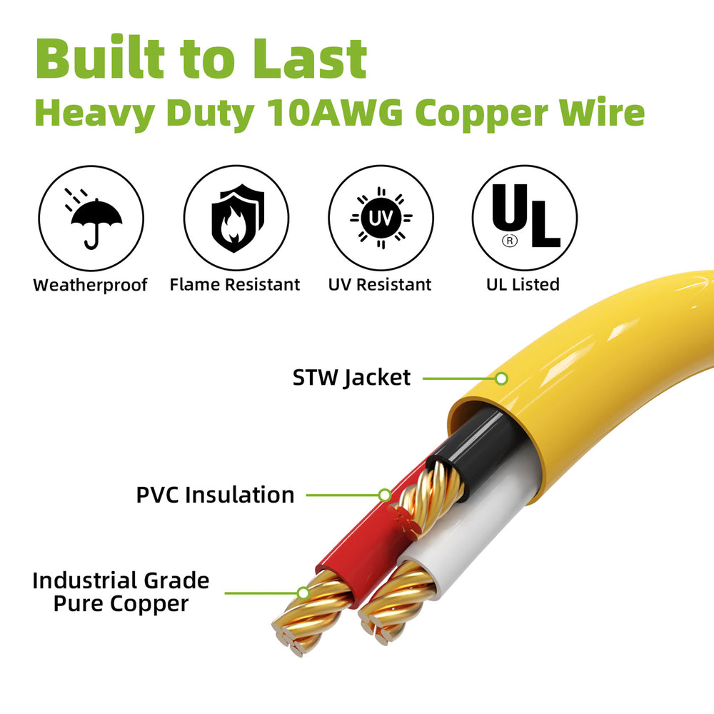 The NEMA 10-30P to 10-30R & 6-50R Splitter is a reliable and versatile solution for welders, EV owners, and dryer users who need to share a single 30 Amp 3-prong dryer outlet. This heavy-duty splitter provides one NEMA 10-30R and one NEMA 6-50R outlet, allowing you to safely power your dryer, welder, or EV charger one at a time without unplugging. Made with 10 AWG pure copper wiring, molded connectors, and a durable STW jacket, it’s ETL Listed for safety and built to last in both indoor and outdoor environments.