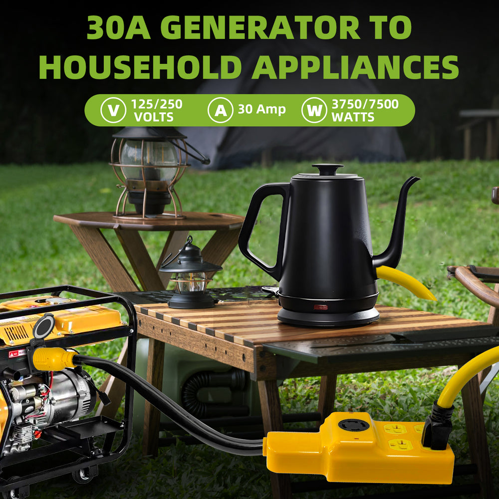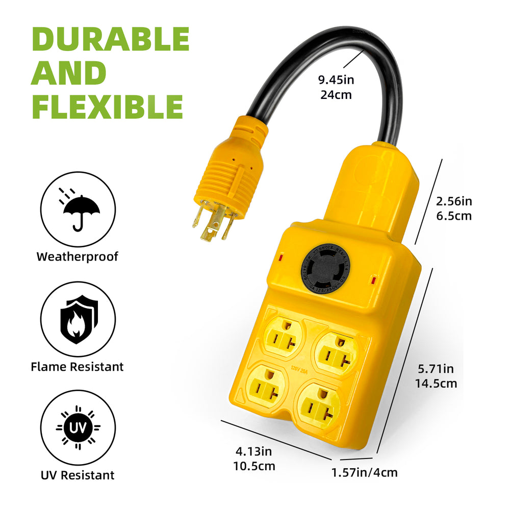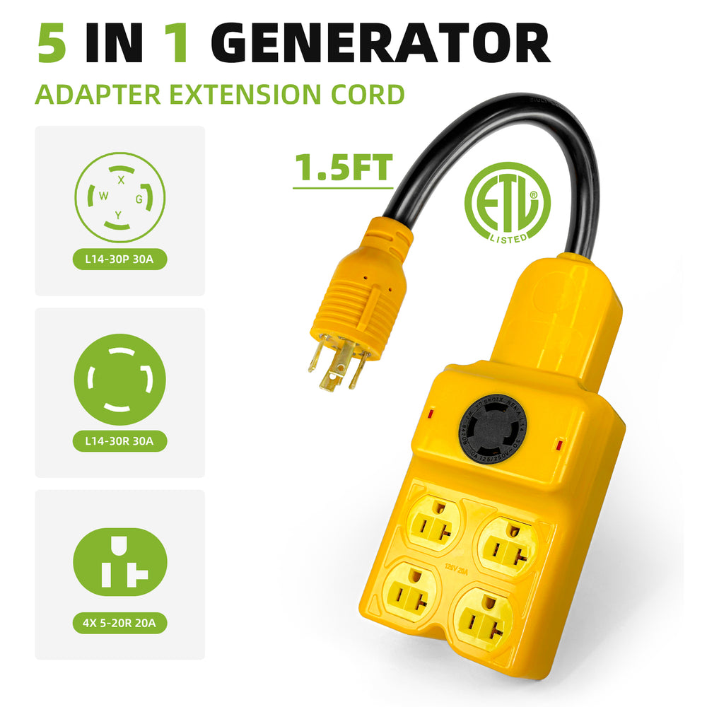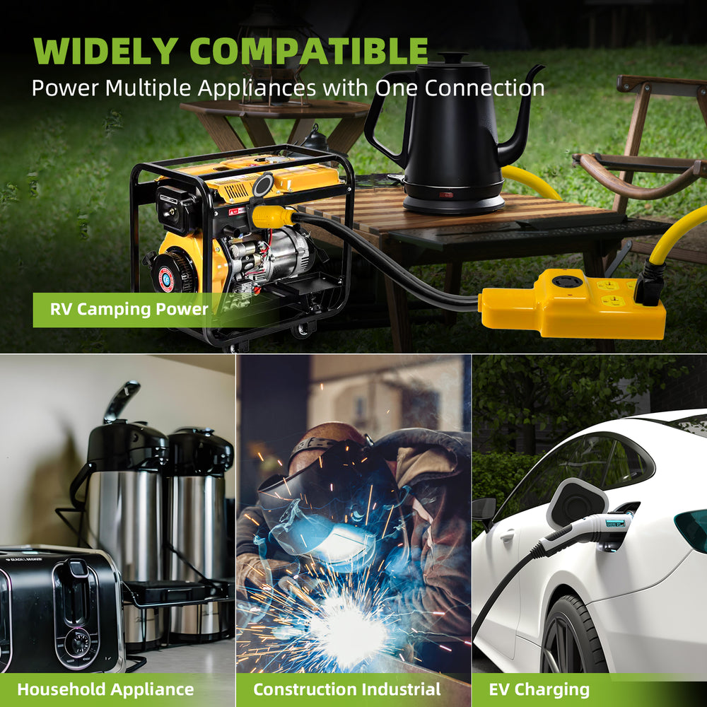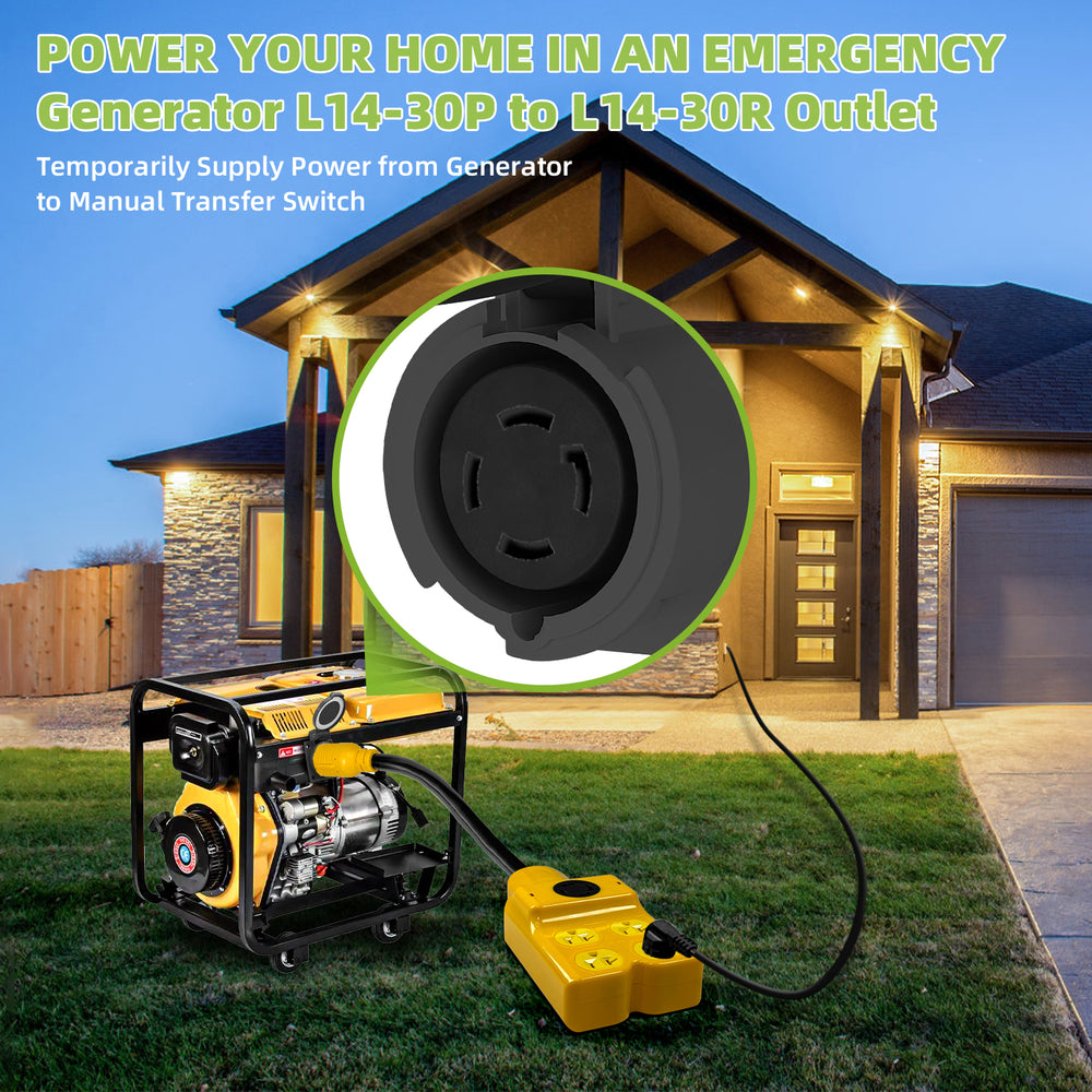 The NEMA L14‑30P Generator Adapter Cord is a heavy‑duty solution for anyone who needs to distribute power from a single 30 Amp 4‑prong twist‑lock outlet to multiple 120 V devices while retaining a pass‑through 30 Amp socket. Engineered with pure copper conductors, a rugged STW jacket, and ETL safety certification, it’s ideal for emergency backup, RV camping, construction sites, and transfer‑switch hookups.