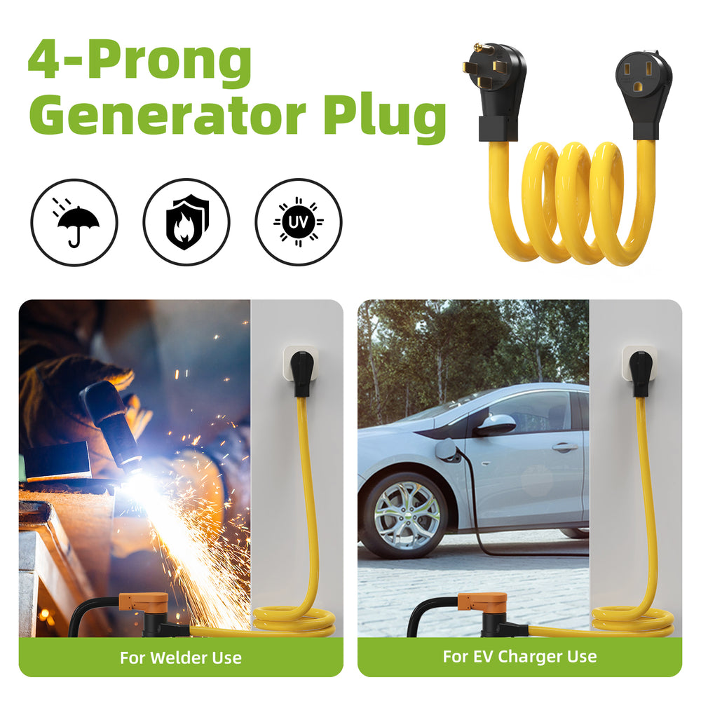 The NEMA 14-50P to 6-50R Welder Adapter Extension Cord is a heavy-duty, reliable power solution designed for welders, plasma cutters, and EV chargers. This 10-foot extension cord converts a 4-prong NEMA 14-50P plug into a 3-prong NEMA 6-50R receptacle, delivering up to 50 Amps and 250 Volts of power — ideal for garages, workshops, or jobsites. Built with 8 AWG pure copper wiring and encased in a flame-retardant, UV-resistant, water-resistant PVC jacket, it offers durability and safety in tough environments. Ergonomic molded grips make plug-in and unplug operations easy, and UL & ETL certifications ensure peace of mind.