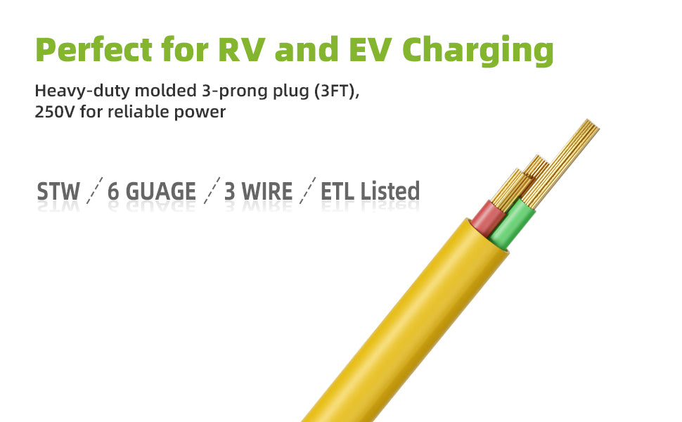 6AWG, 3-conductor pure copper wire for safe and efficient power delivery.